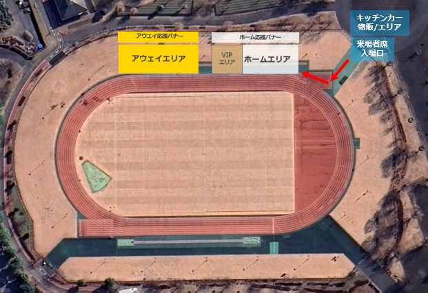 当日は、観客席を「VIPエリア」「HOME観客エリア」「AWAY観客エリア」に区画いたします。