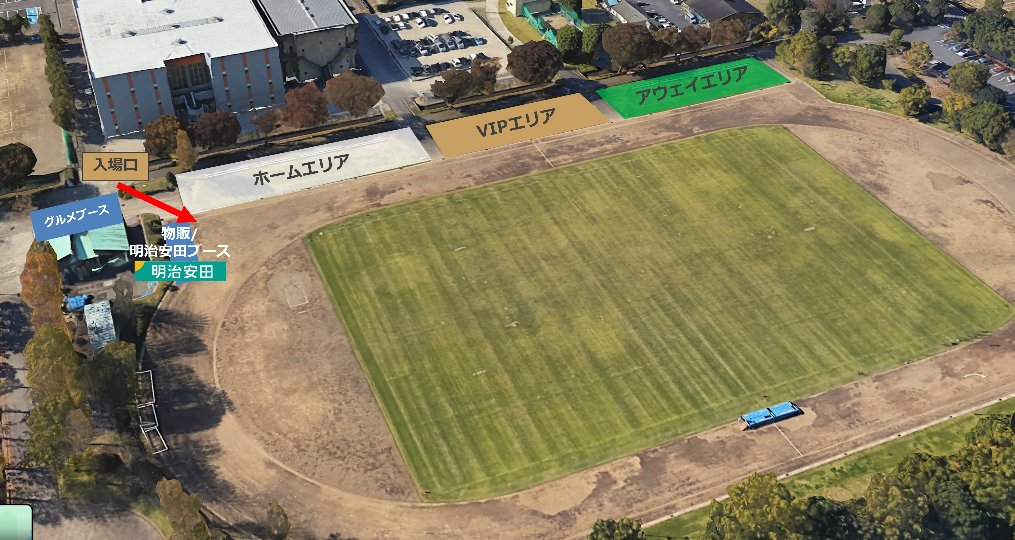 当日は、観客席を「VIPエリア」「HOME観客エリア」「AWAY観客エリア」に区画いたします。