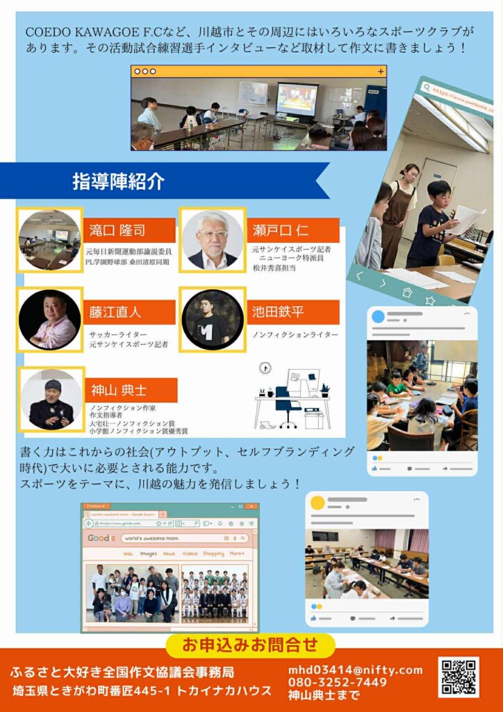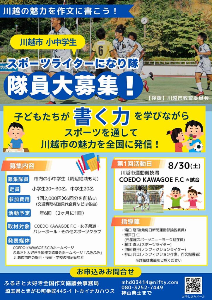 8月30日(土)に行われます第59回関東サッカーリーグ2部 第14節ホームゲームの開催に際し、ホームタウン活動の取り組みの一環として、サポートパートナーである「川越スポーツライターになり隊事務局」と連携し、小学生/中学生を対象にしたスポーツライター講座を実施いたしました。