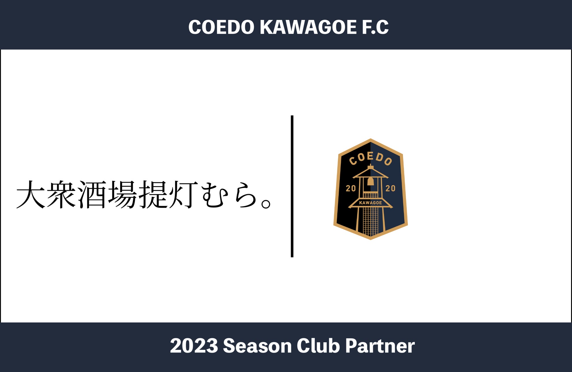 COEDO KAWAGOE F.Cを運営するCOEDO KAWAGOE F.C株式会社(埼玉県川越市、代表取締役 有田和生)は、職人が手がける逸品料理やお刺身が食べられるアットホームな大衆酒場「大衆酒場提灯むら。」(埼玉県川越市、店長 関口昌平)と2023シーズンのクラブパートナー契約を締結したことを発表いたします。