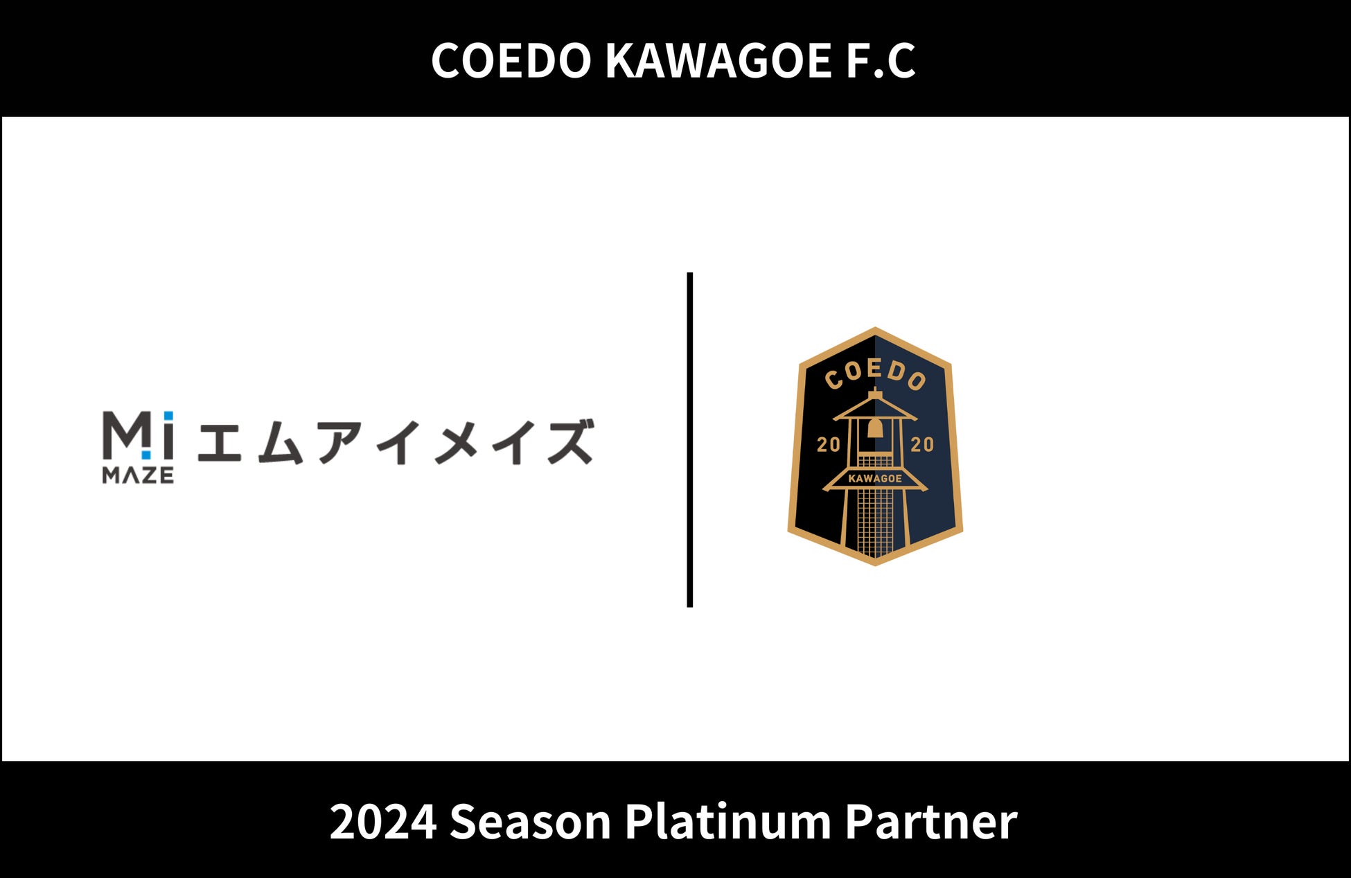 COEDO KAWAGOE F.Cを運営するCOEDO KAWAGOE F.C株式会社(埼玉県川越市、代表取締役 有田和生)は金融系業務系システムの開発・運用・保守を主軸に事業展開する株式会社エムアイメイズ(東京都新宿区、代表取締役 西澤堅)と2024シーズンのプラチナパートナー契約を更新したことを発表いたします。