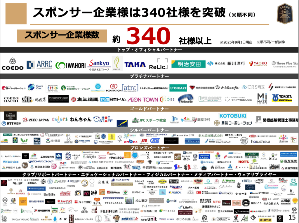現在川越を中心に300社を超える企業様にパートナー(スポンサー)としてご支援をいただいております。