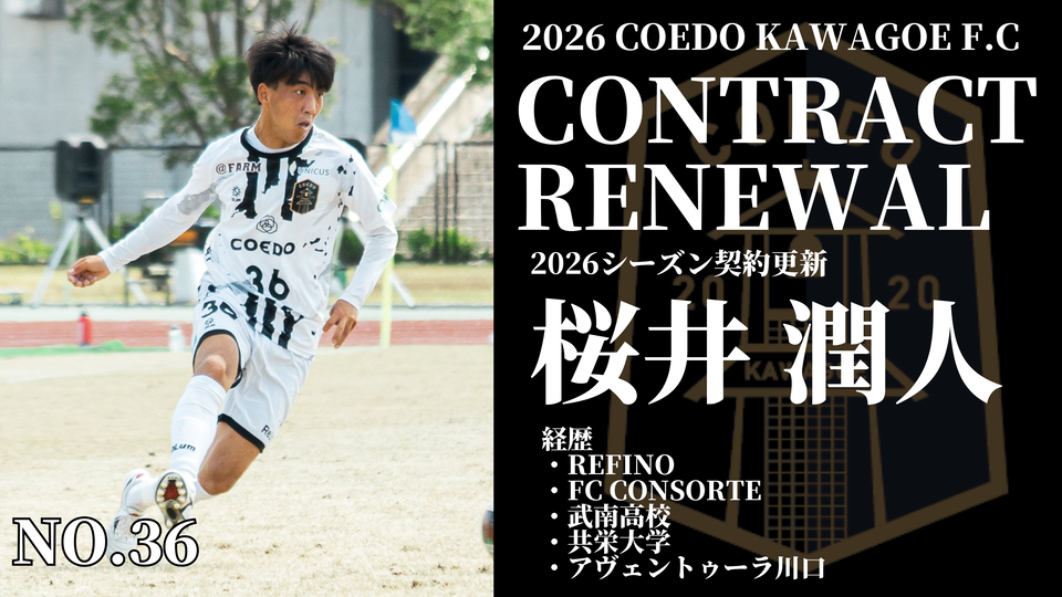 「来シーズンもCOEDO KAWAGOE F.Cとの契約を更新させて頂くことになりました。