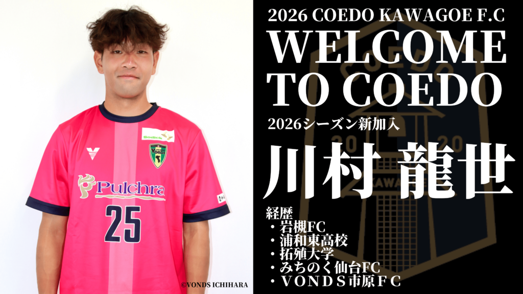 この度、2026シーズンより、関東1部(2026シーズンJFL)に所属するVONDS市原FCより川村 龍世選手がCOEDO KAWAGOE F.Cへ加入することが決定しましたので、お知らせします。