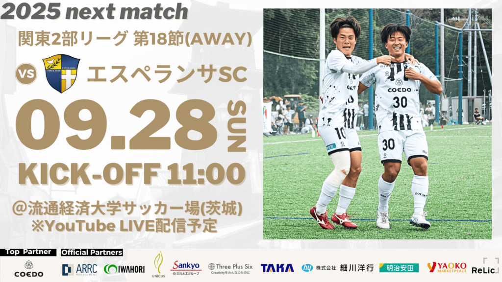 【関東2部リーグ 第18節(AWAY)】vs エスペランサSC(関東2部)